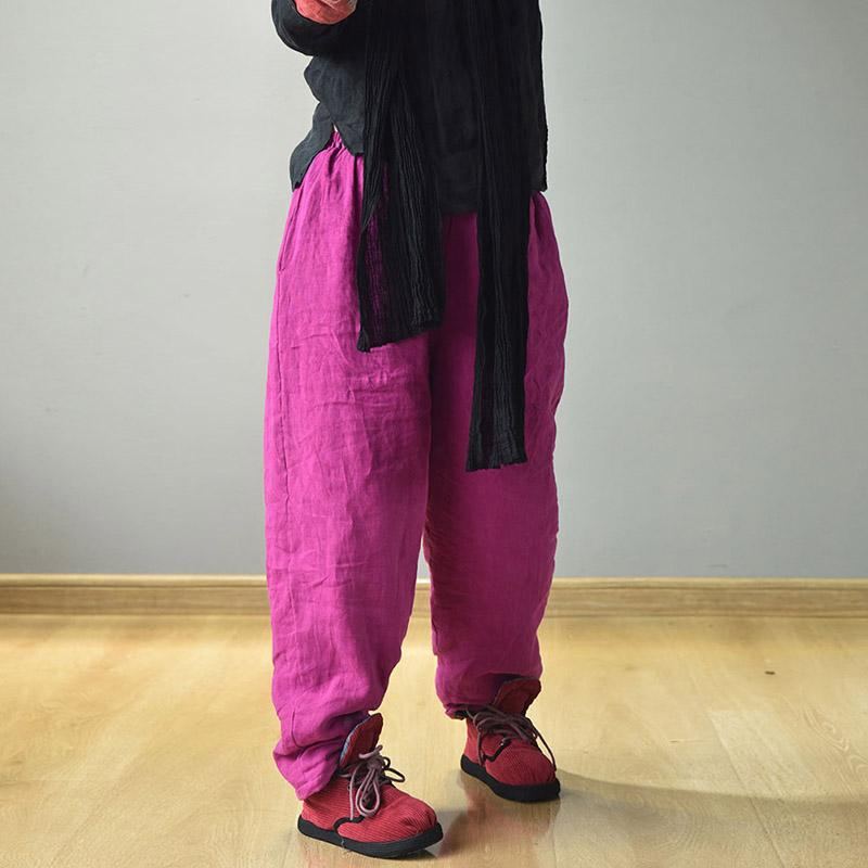 Joustava Vyötärö Talvi Paksut Pellavahousut Ruusunpunainen