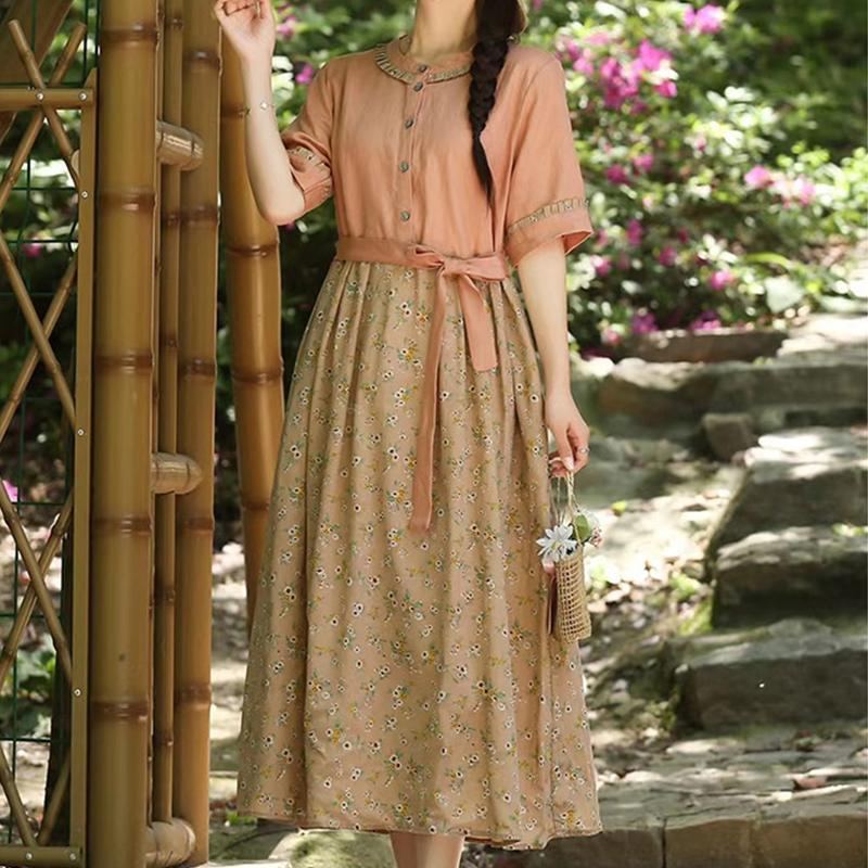 Kesäinen Puuvillainen Kukkainen Tilkkumekko