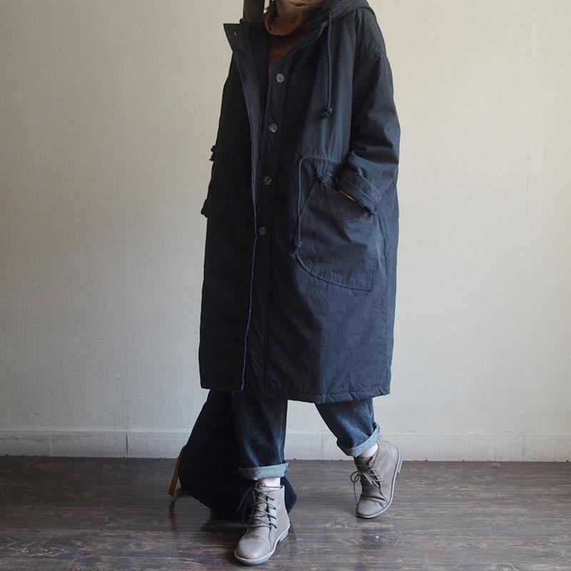 Keskipitkä Löysä Hupullinen Puuvillainen Yksivärinen Takki