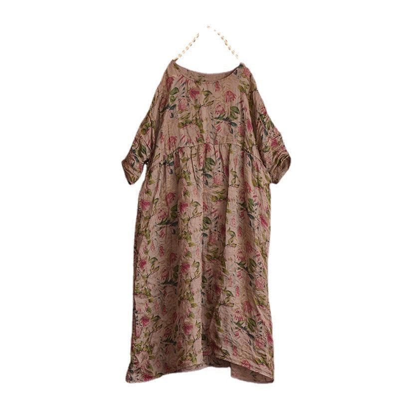 Kevät Kesä Vintage Kukkainen Pellavamekko