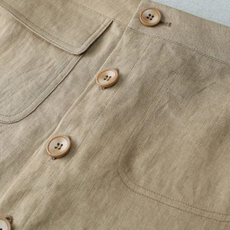 Sopiva leikkaus ja pellavan hengittävyys tekevät tästä aurinkoisesta, khaki-midihameesta ihanan valinnan kiertelemään kaupoissa ennen ulkona ruokailua.- Naiset