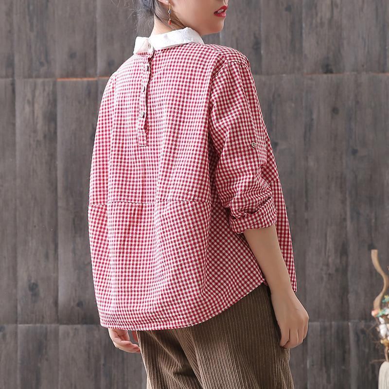 Löysät Selkänapit Naisten Ruudullinen Puuvillapusero