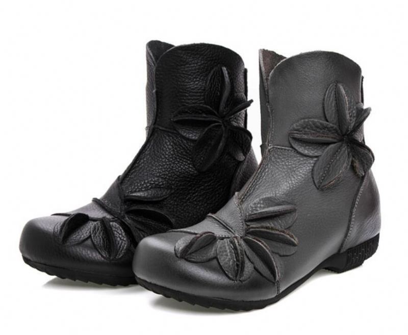 Nahkaiset Etniset Kukat Litteät Puuvillasaappaat