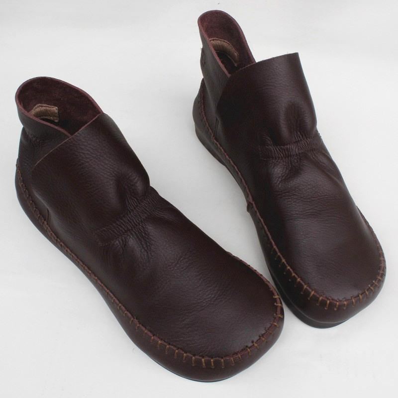 Nahkaiset Retro Flat Pehmeäpohjaiset Naisten Lyhyet Saappaat