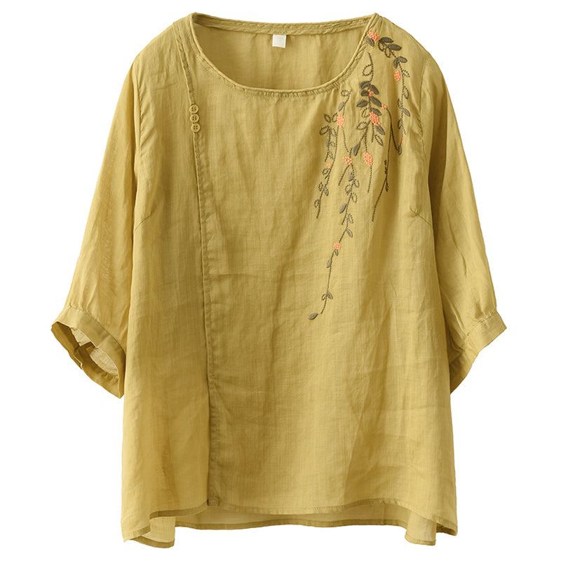 Naisten Kesäinen Retro Kukkakirjonta Löysä Lien T-paita
