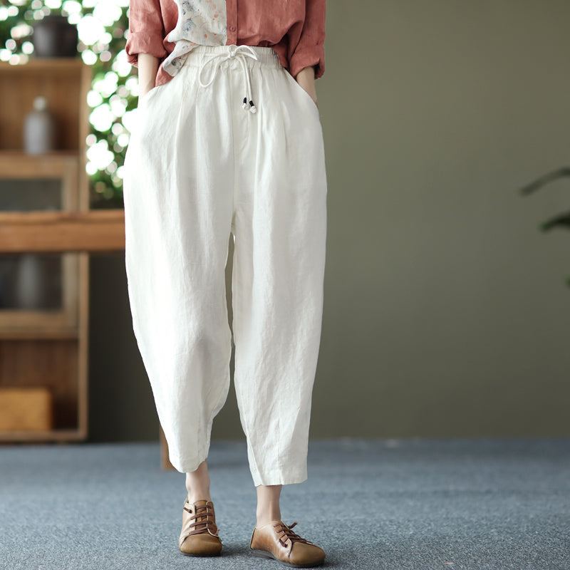 Naisten Löysät Retro-pellavanauhanauhat Vapaa-ajan Housut