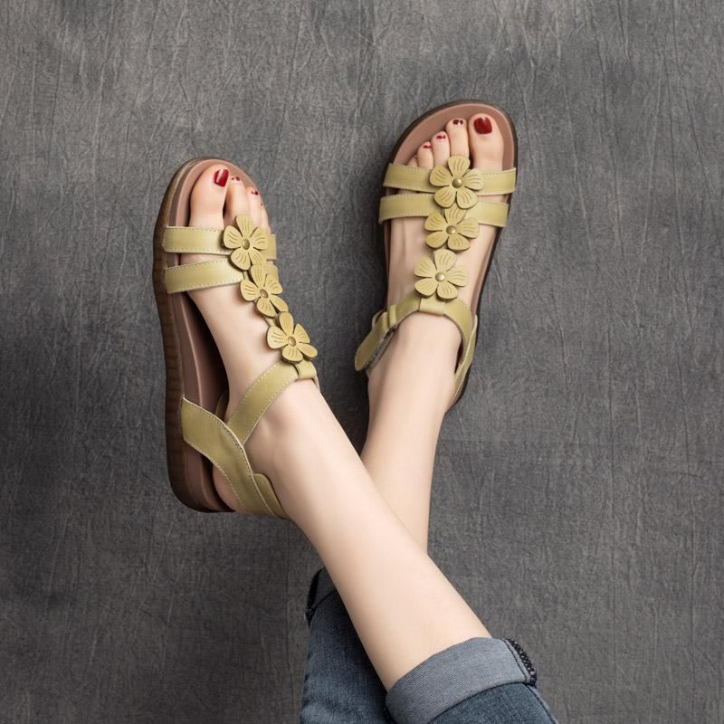 Naisten Nahkaiset Käsintehdyt Kukkasandaalit