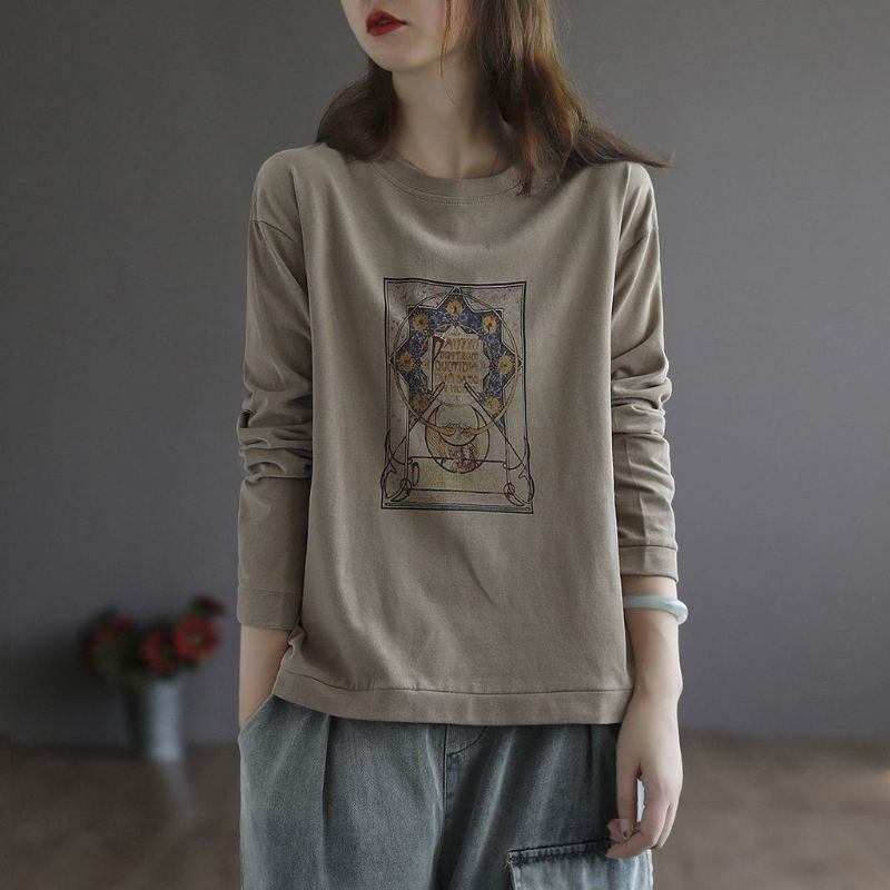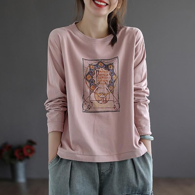 Naisten Retroprinttipainattu Pitkähihainen Puuvillainen T-paita