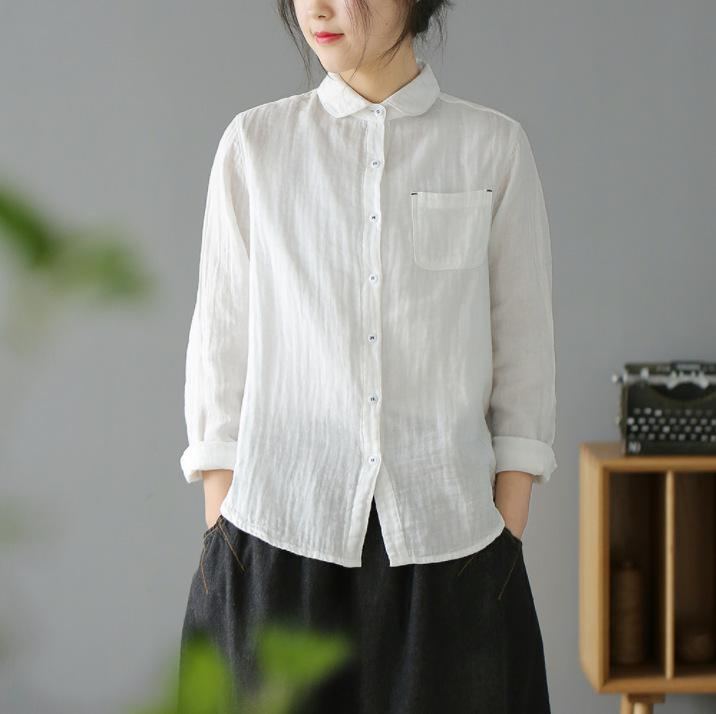 Spring Loose Cotton Pellava Pitkähihainen Valkoinen Paita