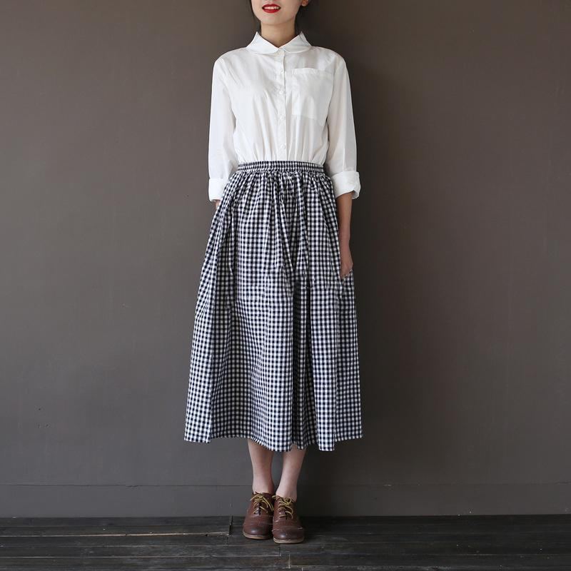 Vintage Puuvillaruudullinen Löysä Naisten Hame
